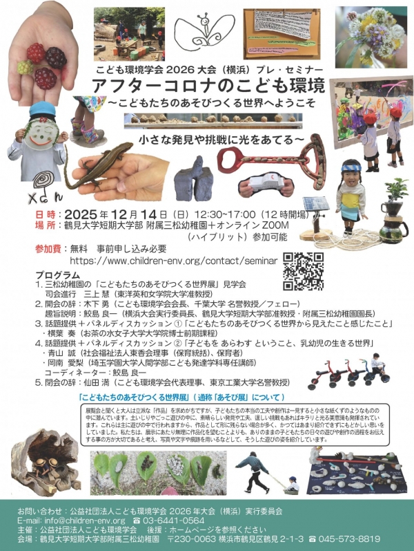 | 会場 | 鶴見大学短期大学部 附属三松幼稚園(横浜市鶴見区鶴見2-1-3)+オンラインZOOM( ハイブリット)参加可能 |